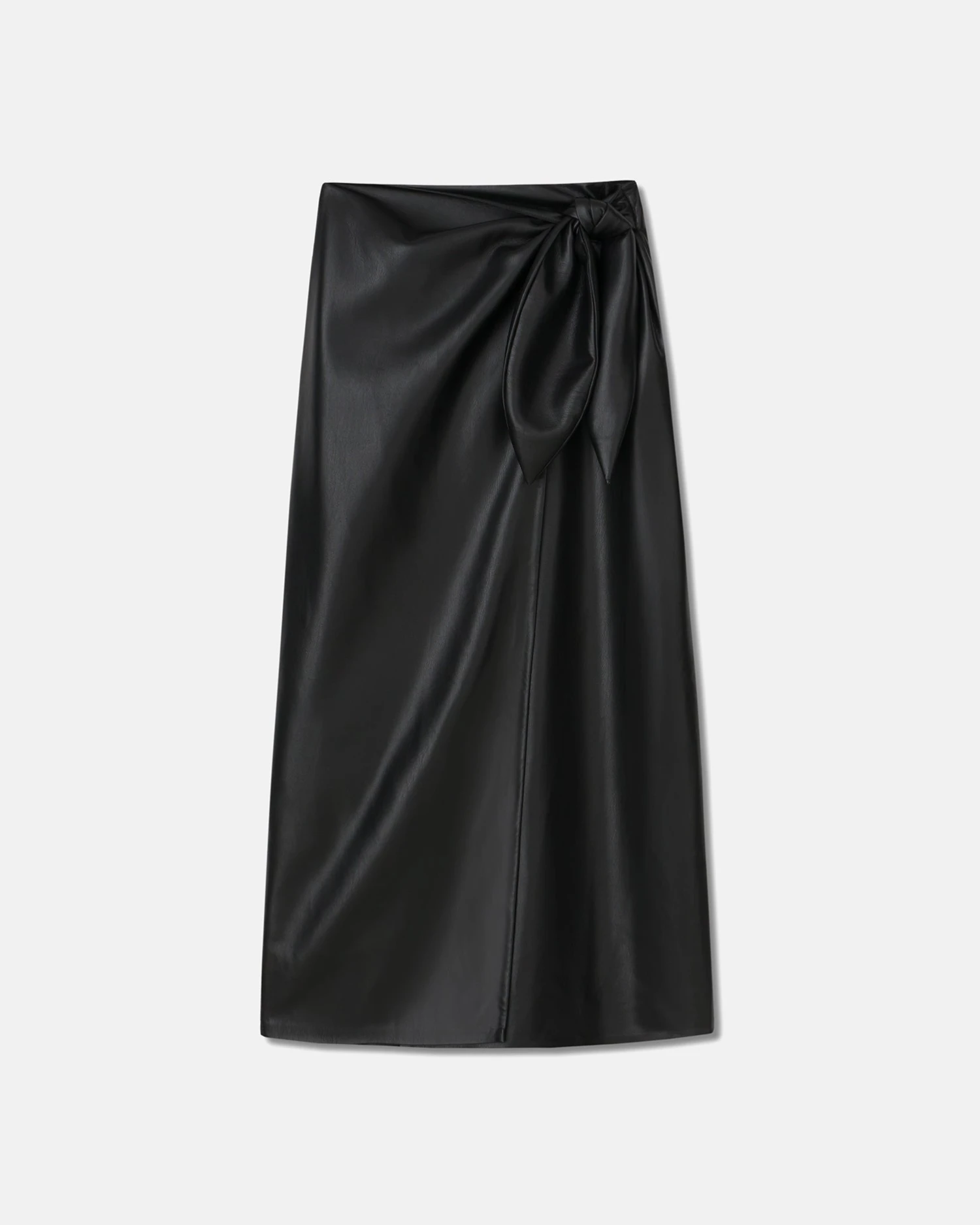 The Amas skirt is crafted from black OKOBOR™ for a flattering wrap silhouette. It’s finished with a concealed side button, elasticated waist and tie front for comfort and functionality.