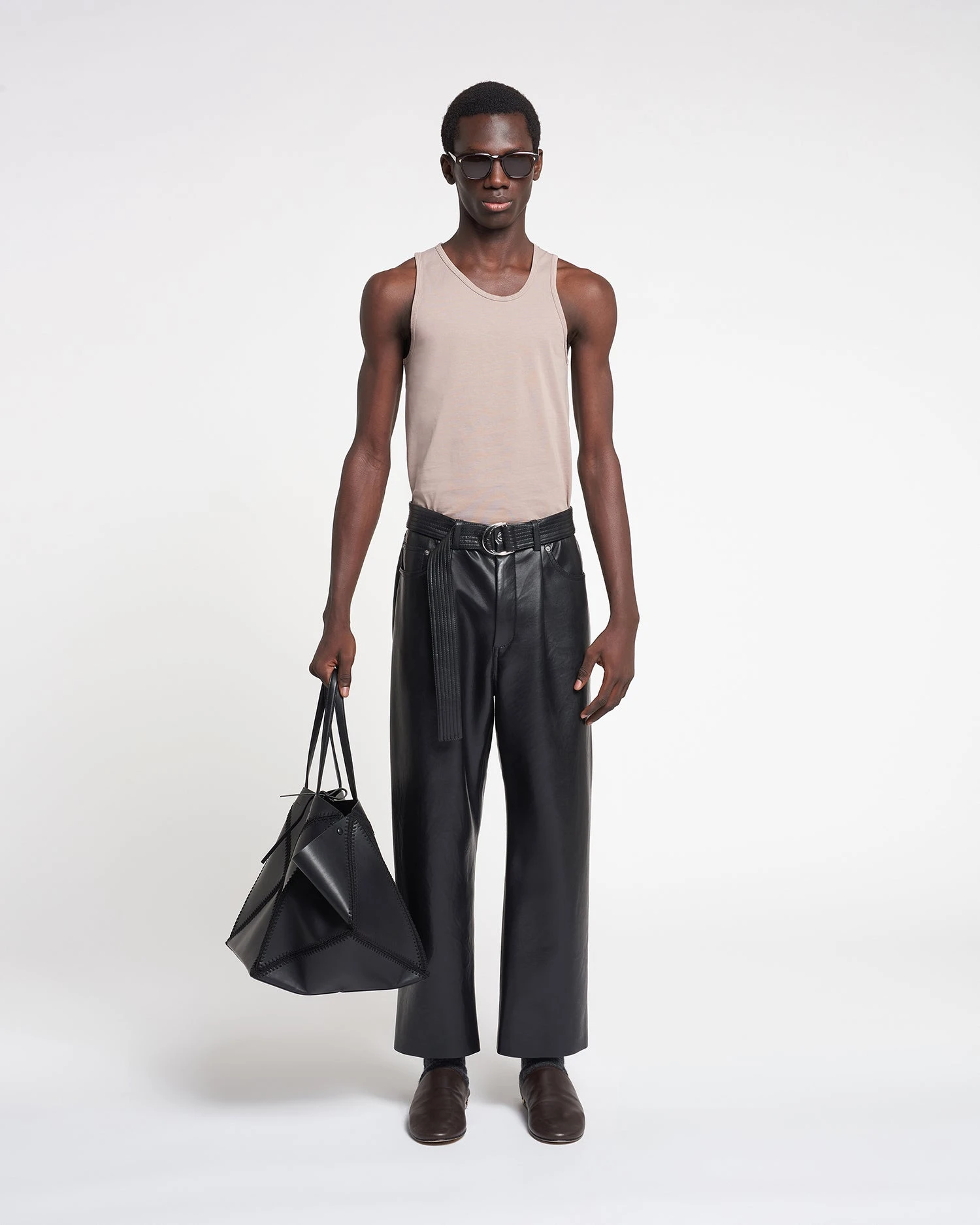 The Aziz is Nanushka’s take on the tank top. Made from organic jersey in a nut colorway, the Aziz features an asymmetric neckline; a playful yet elevated signature.