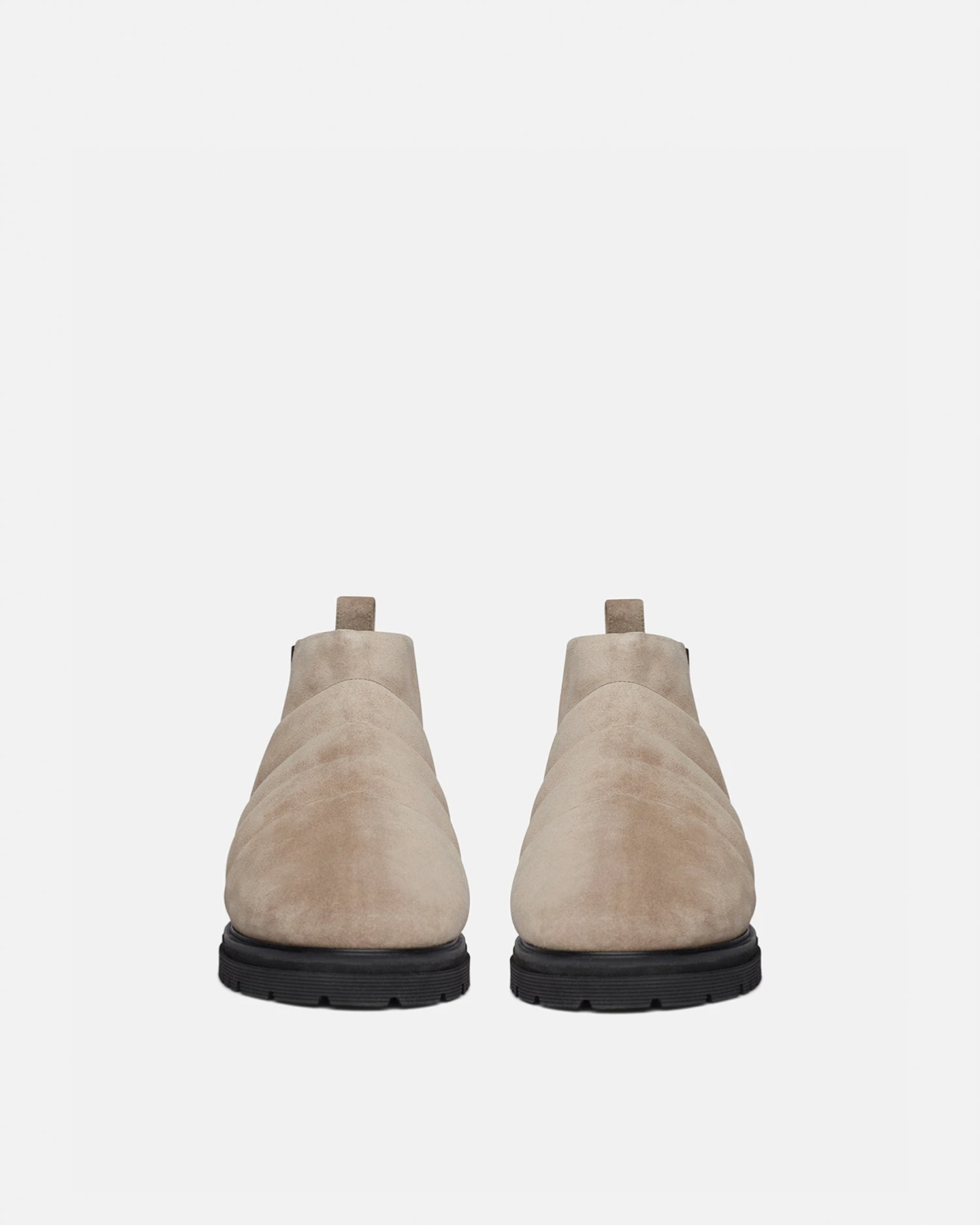 Padded stone suede gives the Bede boots a contemporary feel. Grounded with a heavy tread sole and finished with a rounded toe, elasticated sides and pull tabs allow for pull-on, kick-off ease.