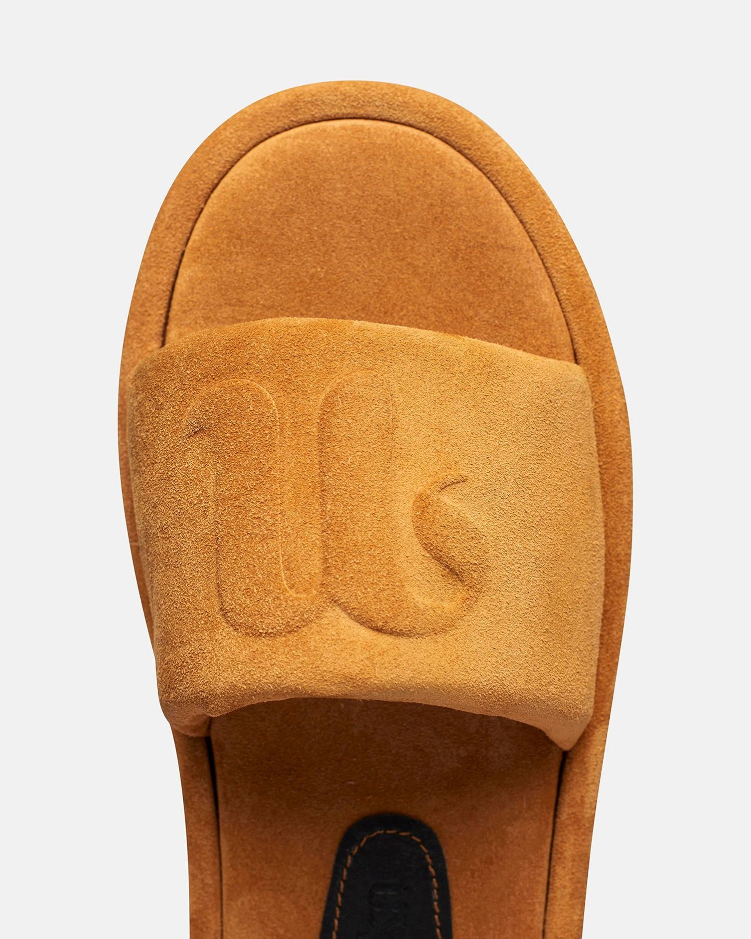 A fresh take on the everyday slide, the Berrington is elevated in supple mustard suede and finished with a signature logo across the front.