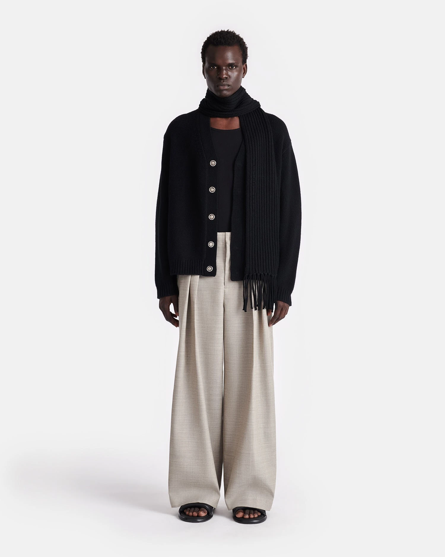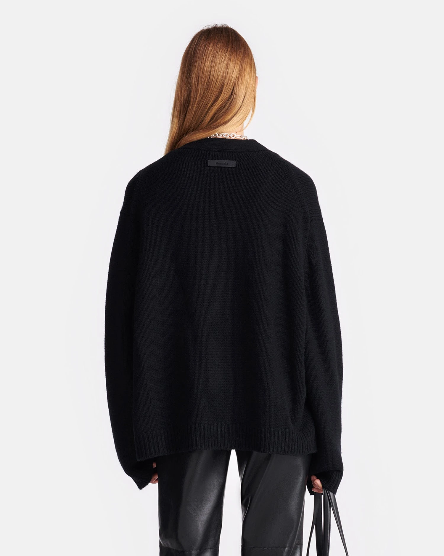 The Braye cardigan is a simple and easy layering piece you don’t have to think twice about. It’s knitted from the softest cashmere blend for a cozy, oversized fit, and comes in classic black.