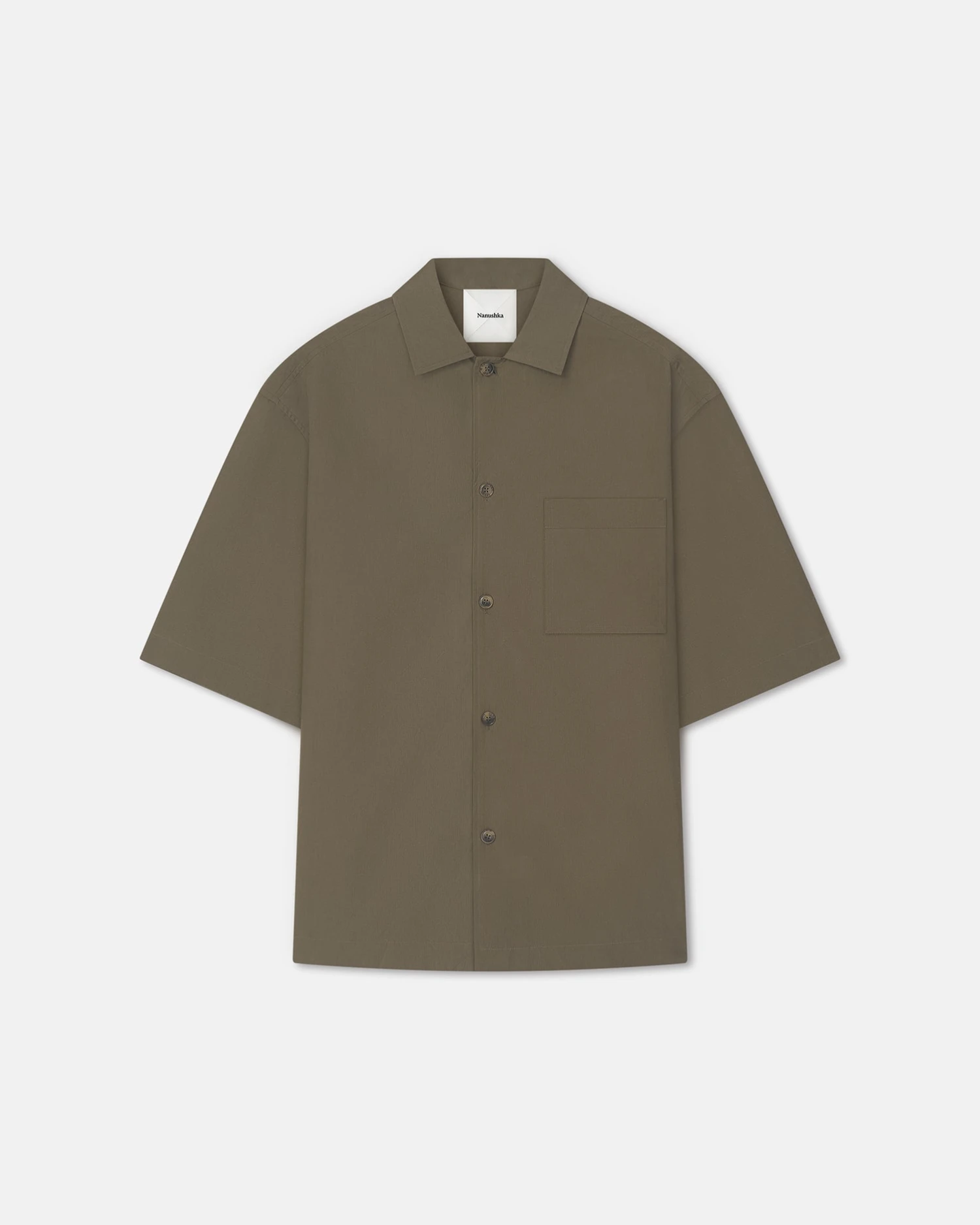 The Caspian shirt is made from heavy poplin for an oversized fit. The uniform-green tone adds to its timeless utilitarian feel.