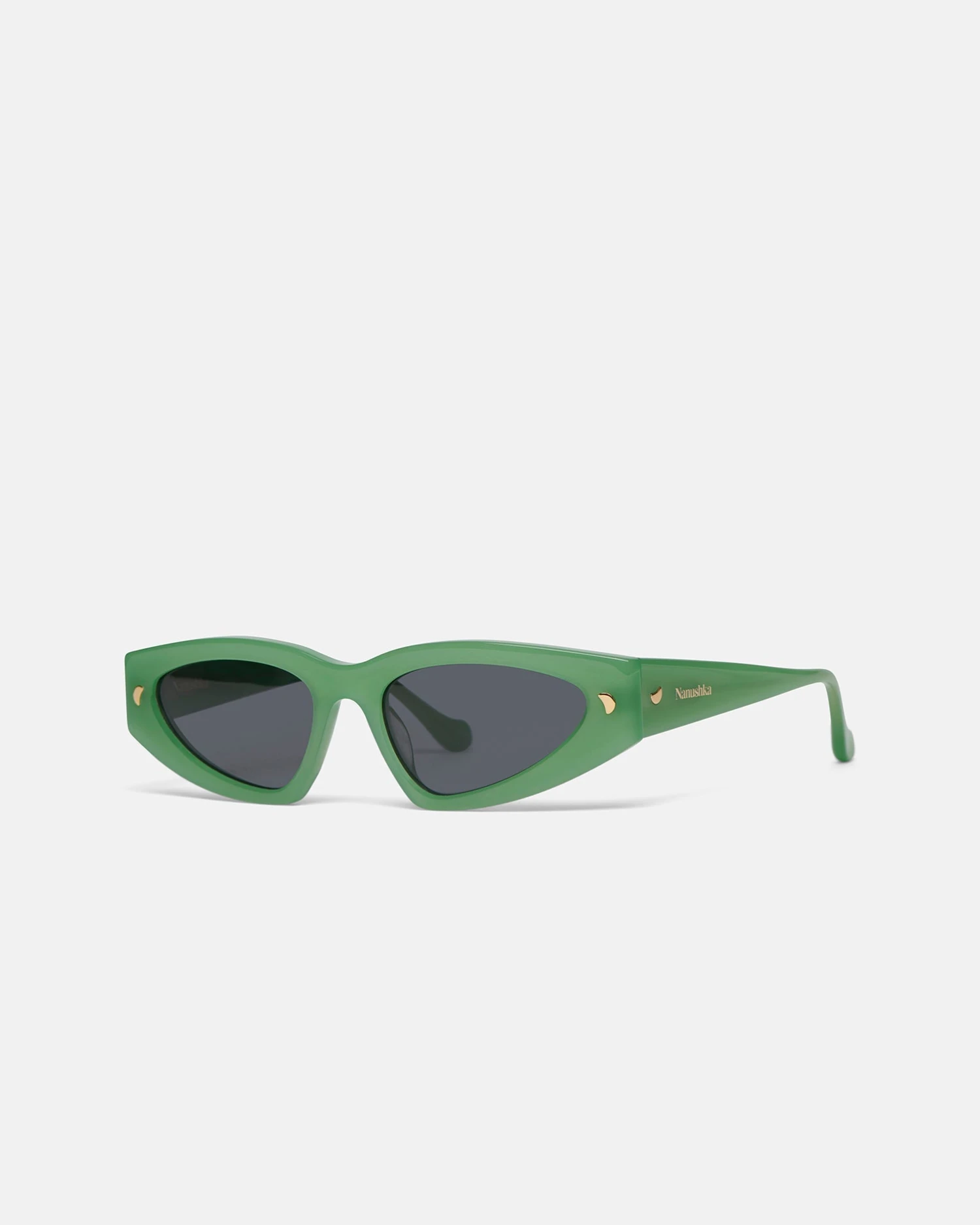 The Crista sunglasses are defined by a futuristic D-frame shape accented with signature gold ‘N’ motifs at the temples. In translucent green, they are crafted from bio-plastic and accompanied by a protective pouch made from offcuts of our signature alt-leather.
