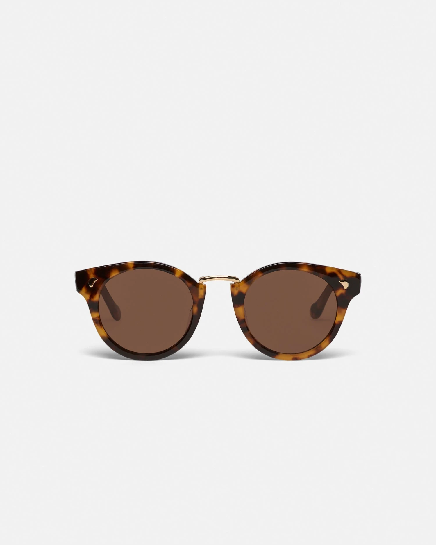 The Duy sunglasses have an expressive round shape that feels at once modern and retro. They have brown lenses fitted within dark amber plastic frames – both made with bio-based materials – and are complete with a gold-tone bridge.