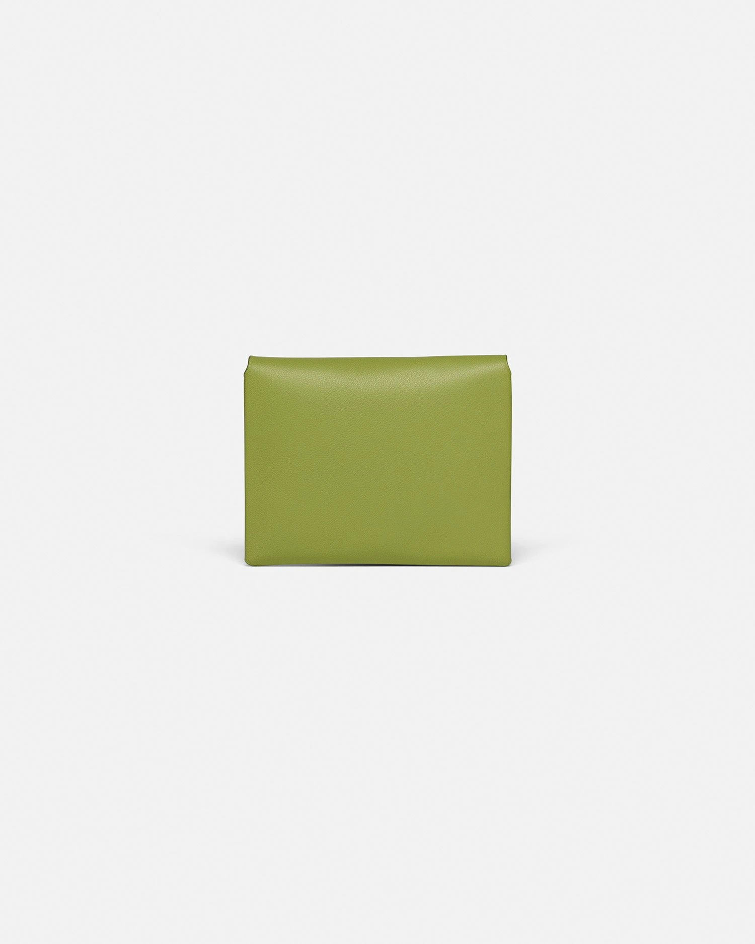 Designed in Nanushka’s signature Origami style, the folded cardholder folds flat and is crafted from structured leather. The lime exterior is contrasted by a signature moonbeam interior, complete with a blind-debossed Nanushka wordmark and brushed gold hardware.