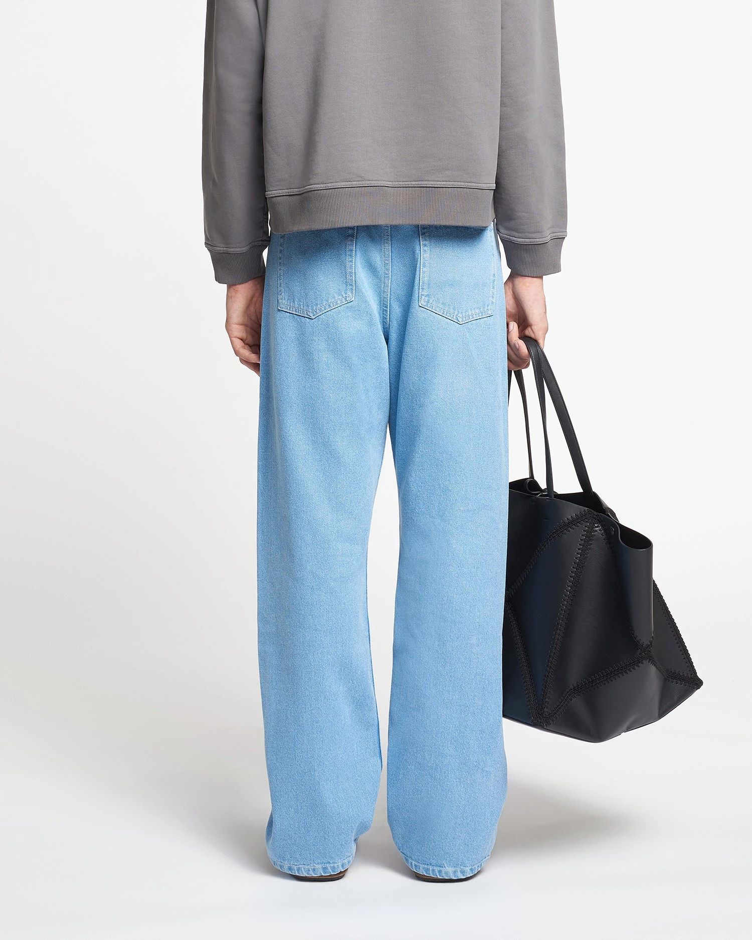 We champion precise cuts and responsible materials in our denim collection. These straight-leg jeans are made from our eco denim in a light wash and finished with a classic five-pocket design, belt loops and an embroidered monogram.