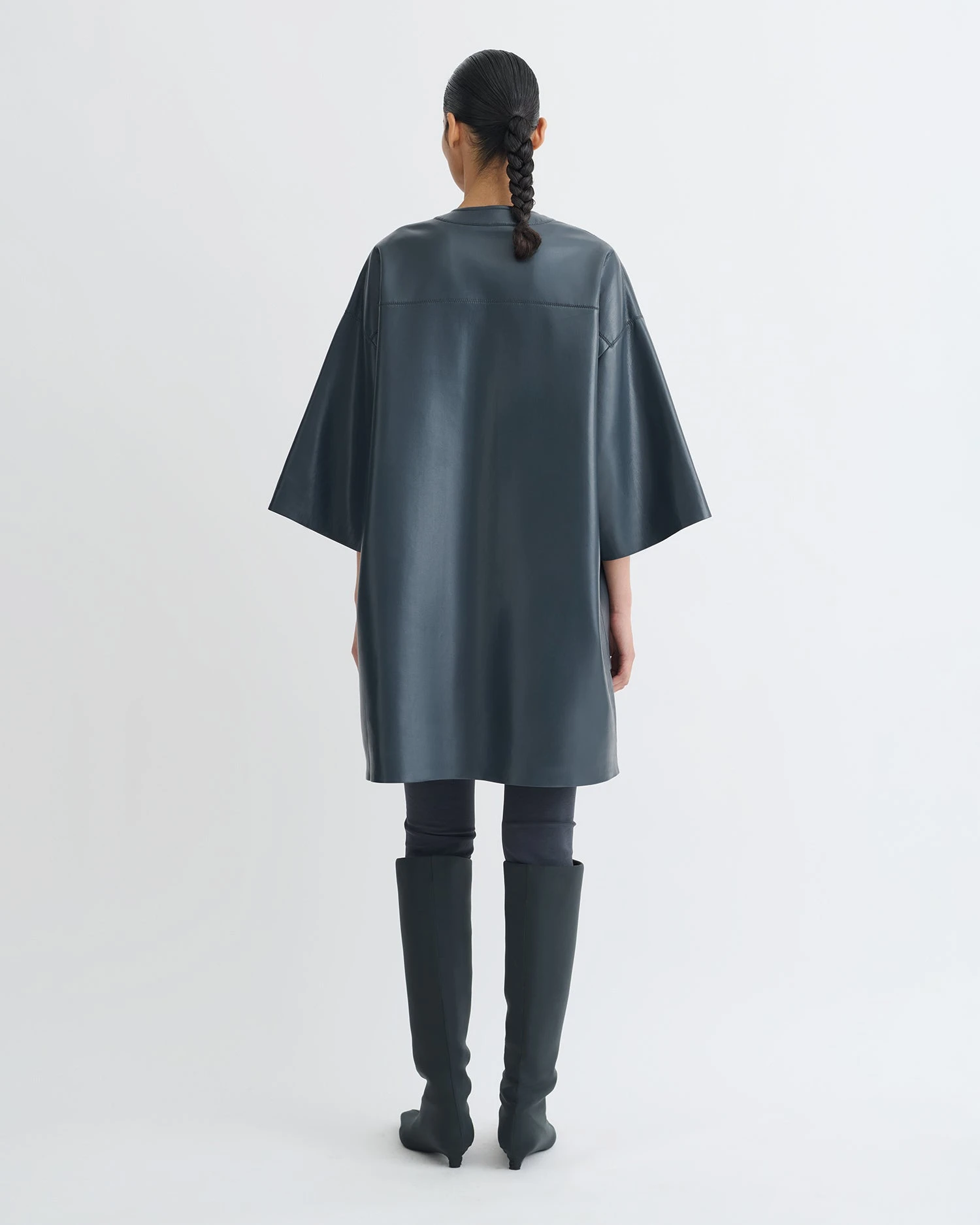 We always look to create something entirely new with our signature innovative fabric. The Ingar dress is made from Okobor™ alt-leather for an ultra-oversized fit enhanced by wide sleeves. Wear it on its own or layered over streamlined separates.