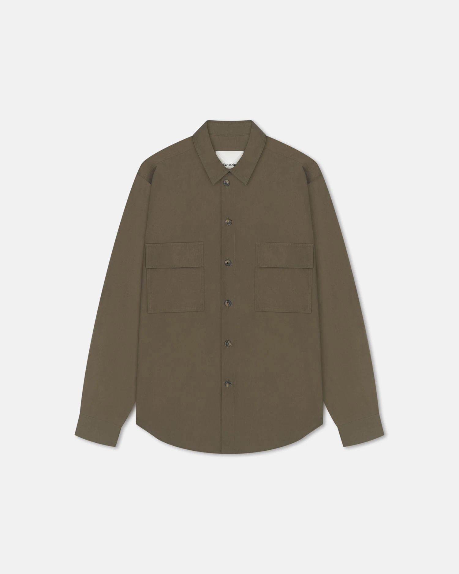The Jari shirt is showcased in uniform green and cut to in heavy poplin. It’s cut to a classic point-collar silhouette with long sleeves and button fastening, perfect for layering and transeasonal dressing.