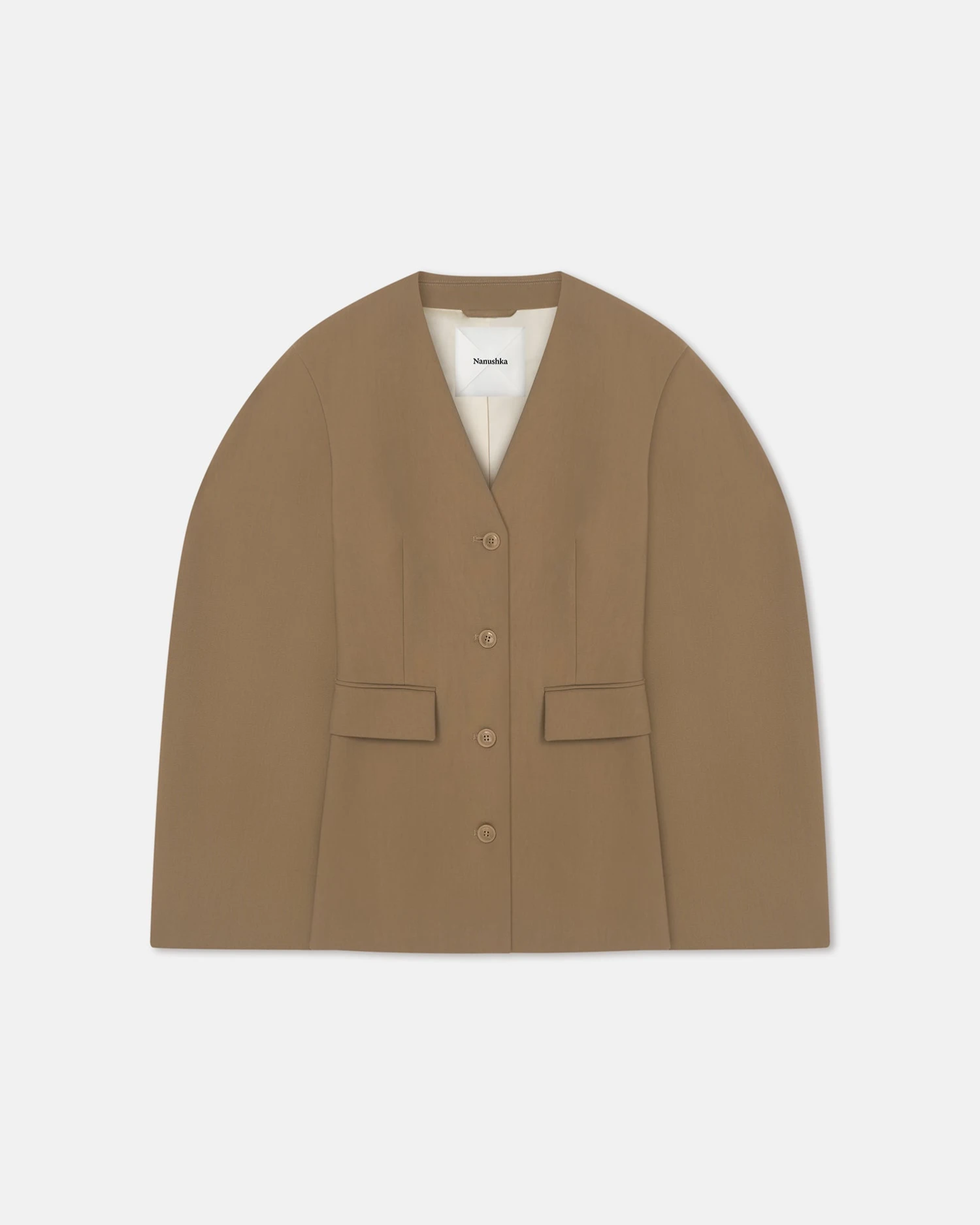 Nanushka tailoring is all about ease and elegance. The Kaori blazer feels fresh and contemporary thanks to the collarless design, elongated silhouette and rounded sleeves. In rich brown, it’s designed to be worn with the coordinating tailored pants.