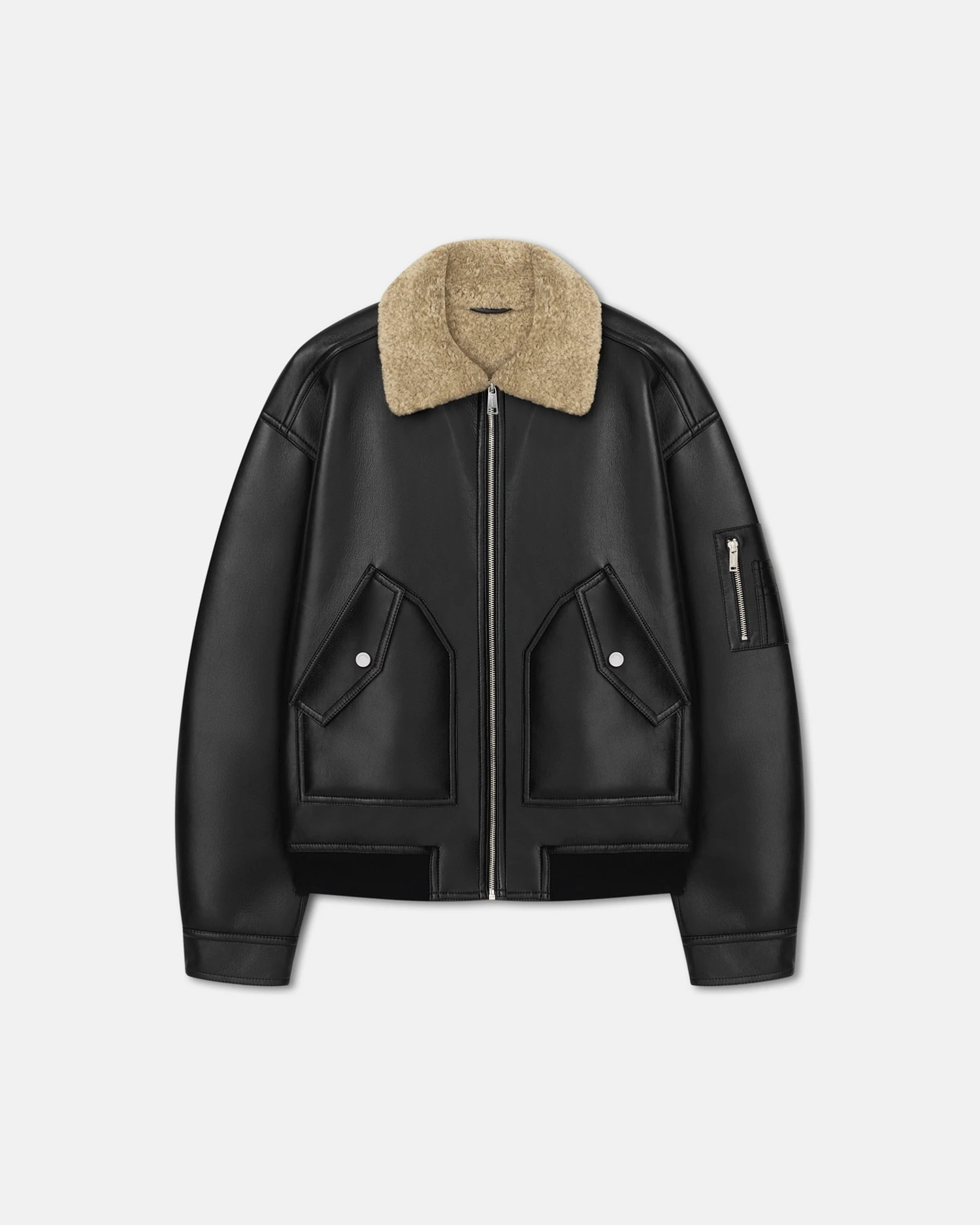Nanushka Lude – Bonded Shearling Flight Jacket – Cornstalk/Black