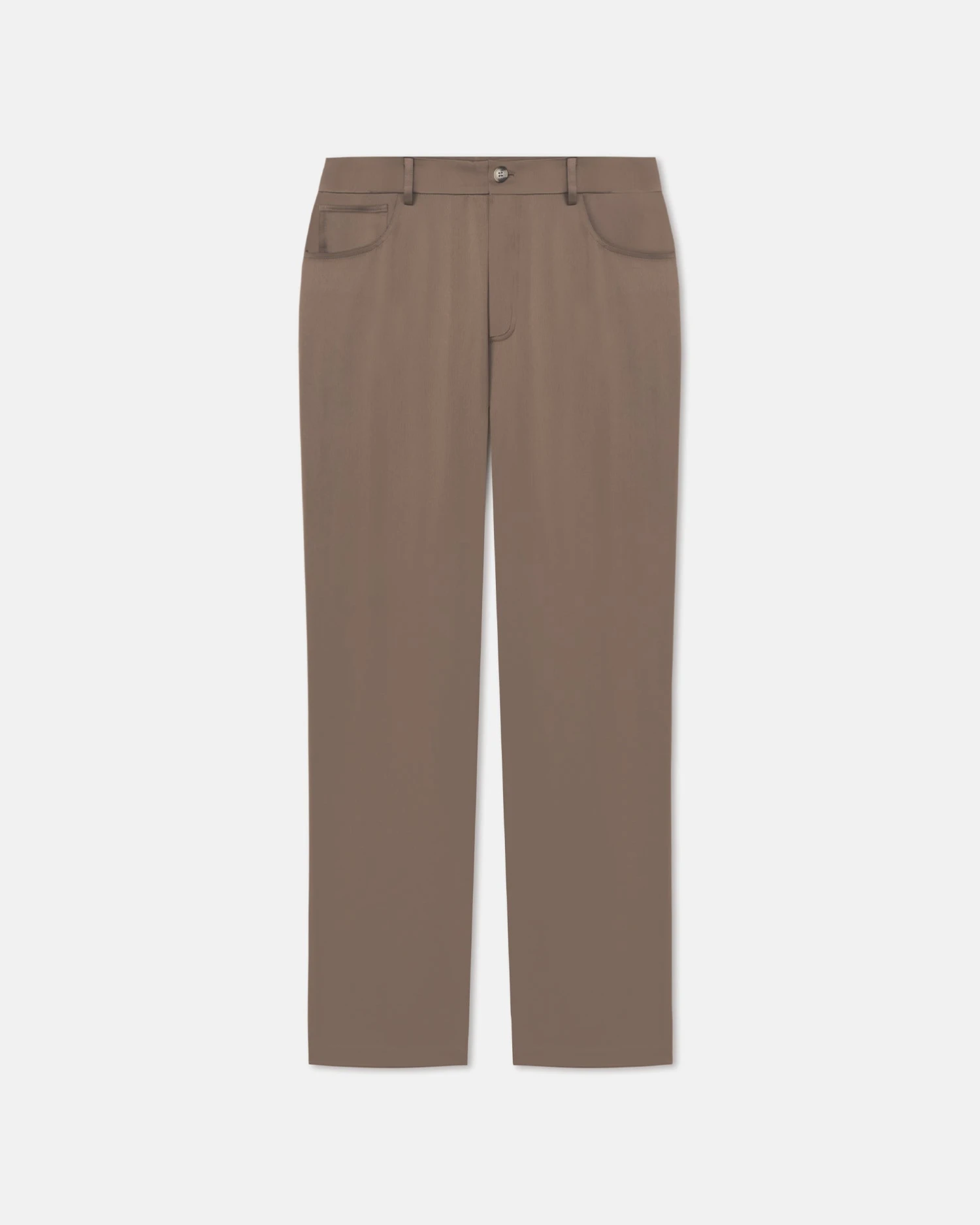 The Macen trousers have a smart yet easy-going feel. They are made from smooth and soft coffee bean slip satin that fall straight down with a relaxed fit.