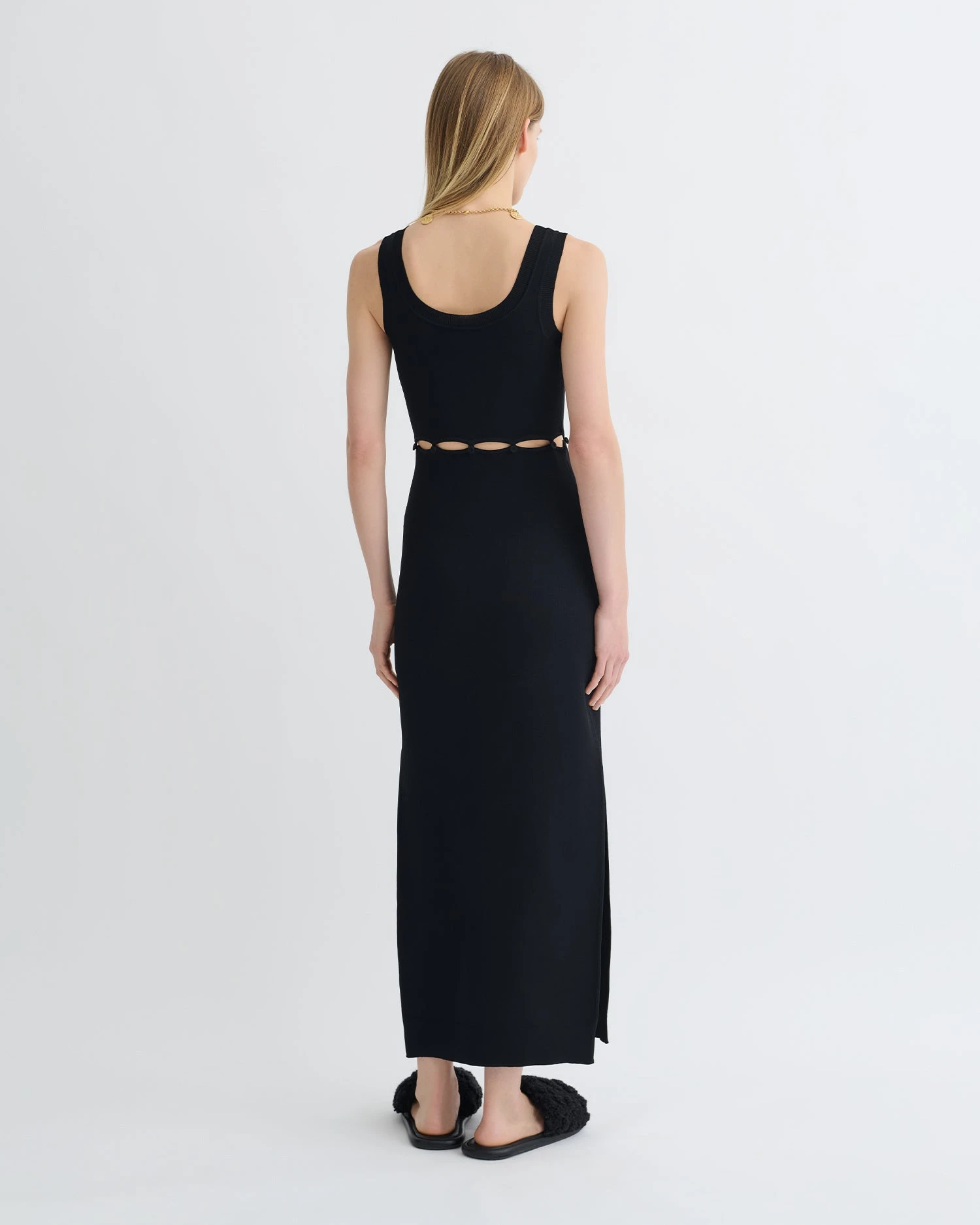The Maves dress is relaxed yet refined. Knitted for a close fit, it’s enhanced by a row of buttons at the waist. Wear yours day and night.