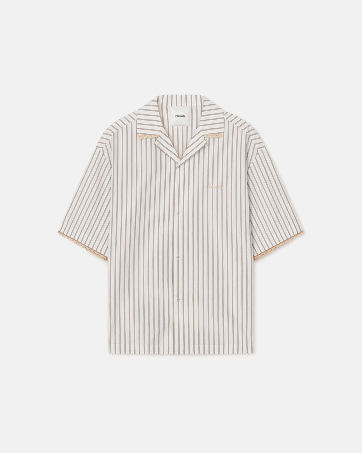 The Maxton shirt is a classic style with our signature minimalist style. Crocheted with contrasting stripes, it is finished with a relaxed short-sleeved silhouette and a single chest pocket.
