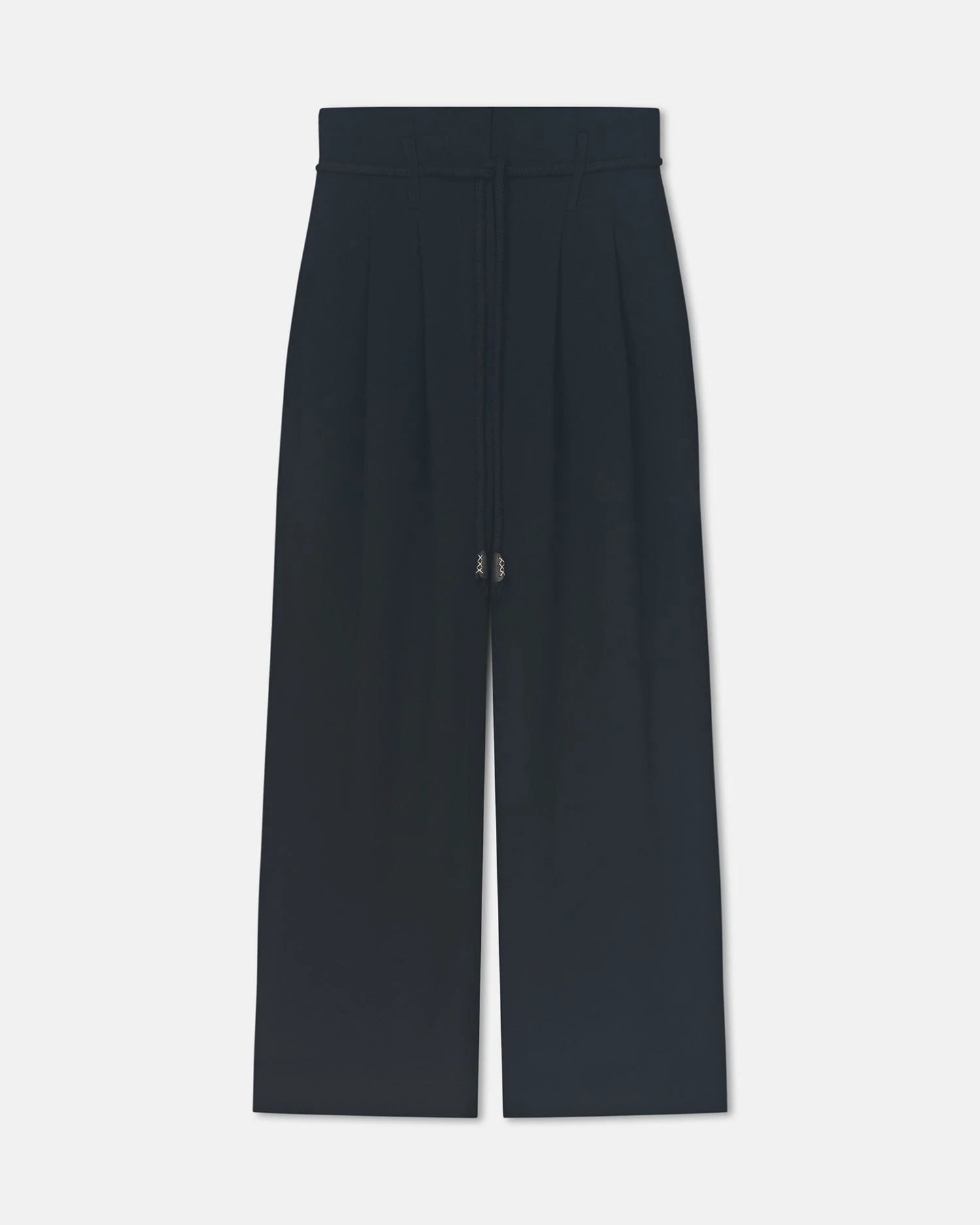 The Nevada pants demonstrate our way of thinking about garments beyond trends and seasons. Made entirely from upcycled tech linen in classic black, they sit high on the waist with an adjustable tassel belt. Style them with the matching Ada shirt.