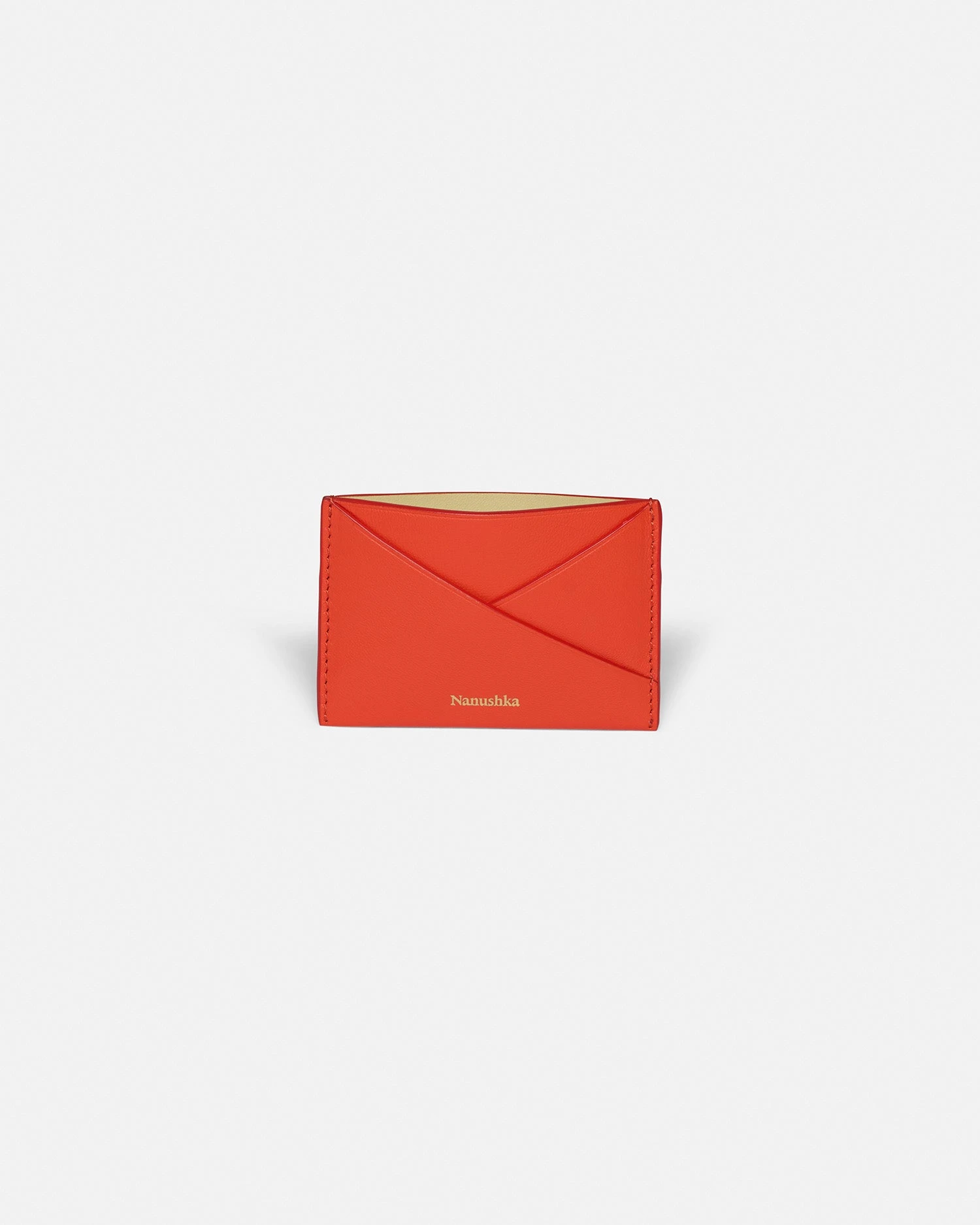 Designed in Nanushka’s signature Origami style, the cardholder is crafted from structured leather. The red exterior is contrasted by a signature moonbeam interior, complete with a blind-debossed Nanushka wordmark.