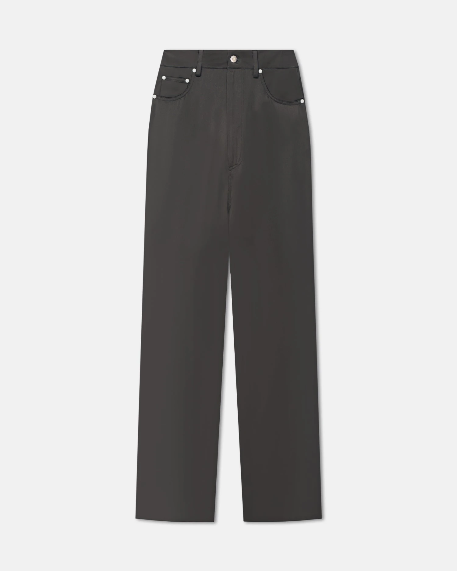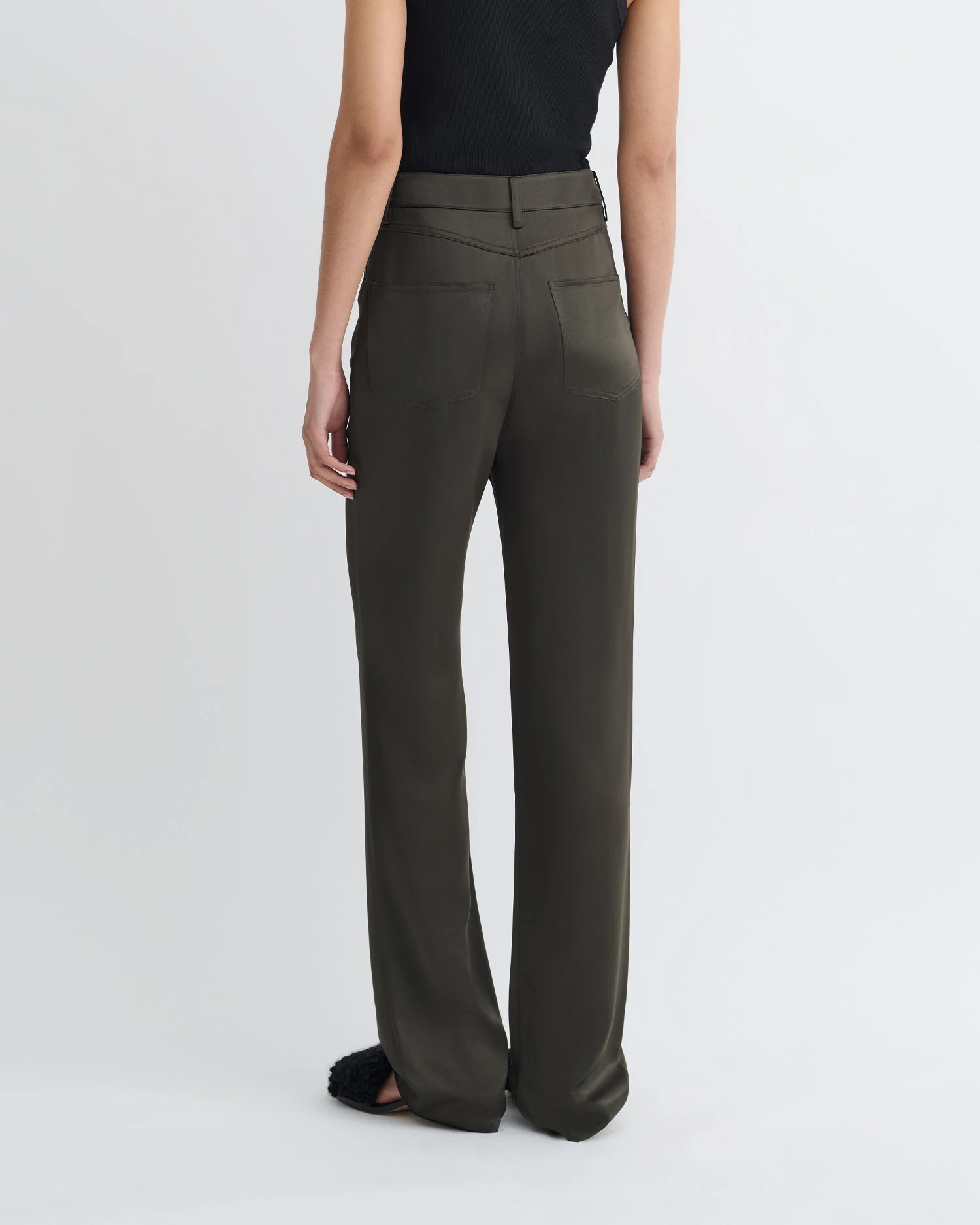 The Tita pants are made from our slip satin in dark green. Relaxed yet refined, they have a classic 5-pocket design. Wear yours with the matching Nathalie shirt.