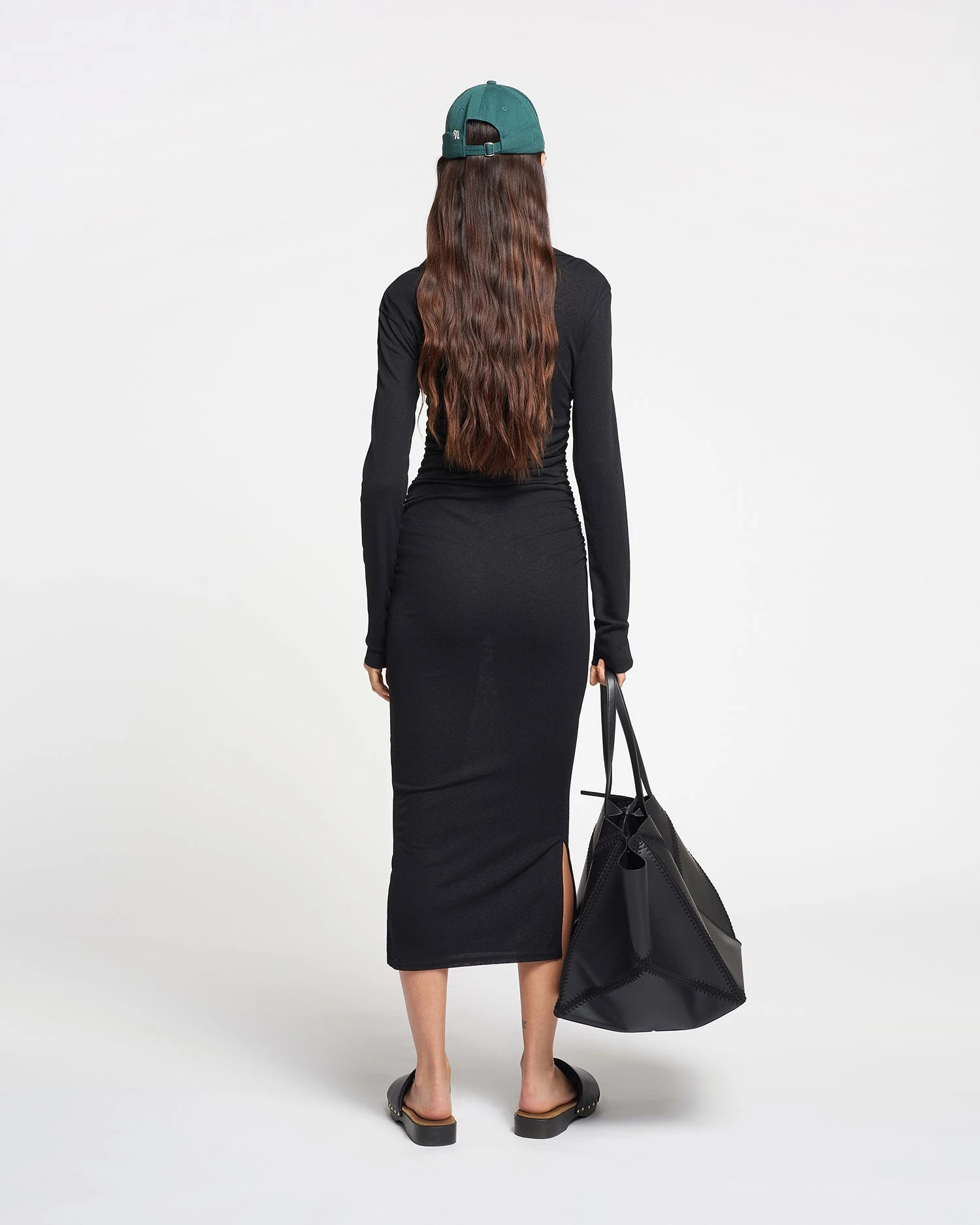 The Verity is crafted from our signature mesh jersey that ruches beautifully around the body, while the shirting silhouette creates structure.